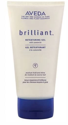 Aveda Brilliant Retexturing Gel heeft een speciale formule met gecertificeerde biologische Aloë Vera, Calendula, Kamille en andere pure bloemen- en plantenextracten. Deze ingrediënten voeden het haar, geven het haar een glans en is geschikt voor gemiddelde tot stugge haartypes.